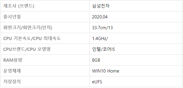 삼성 갤럭시 북 S LTE 13인치 nt767xcl-kc58s 상품정보