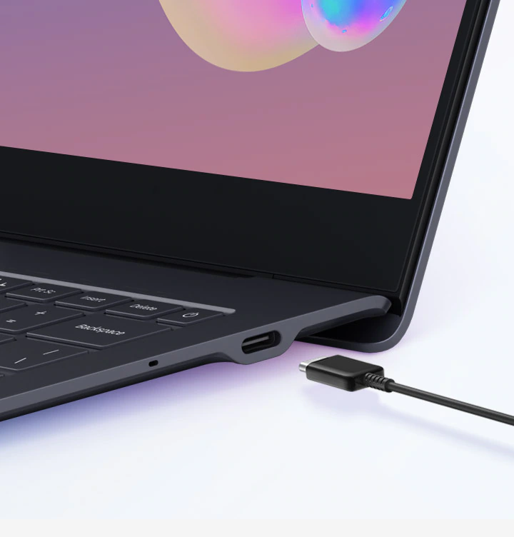 실시간 원격 수업 참여는 물론, 자료를 다운로드하고 숙제를 업로드하는 것까지 모두 쉽고 빠르게 할 수 있습니다. 양쪽에 1개씩 C타입의 포트가 총2개가 있어 멀티포트(젠더)가 있다면 랜선 연결로 인터넷도 가능합니다.