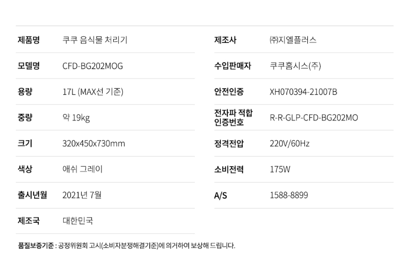 쿠쿠 맘편한 음식물 처리기 상품 정보는 참고하시도록 링크를 남겨 드릴게요.