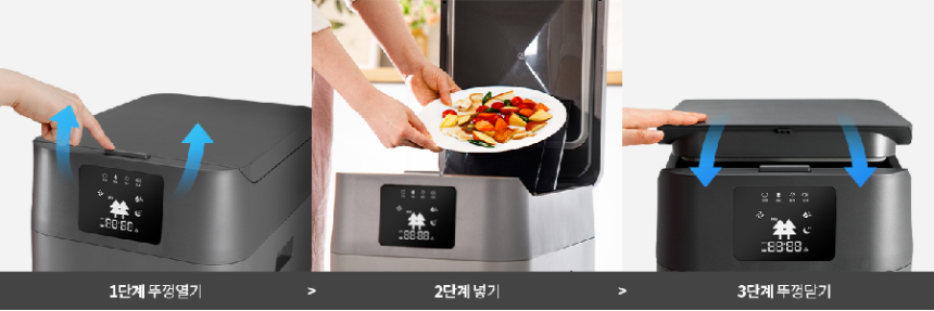 간편하게 열고 넣고, 닫으면 집에서 직접 편리하게 바로 음식물 처리가 가능합니다.
