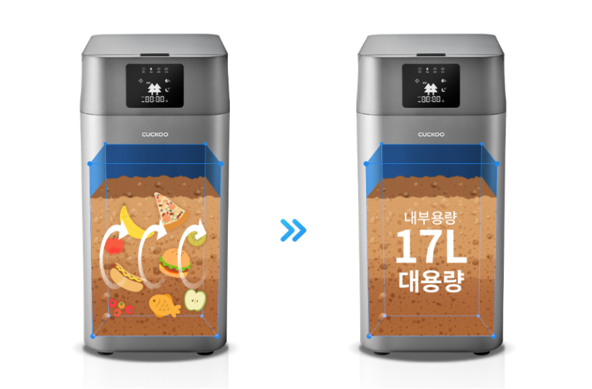 넉넉한 17L의 대형 내부 용량으로 분해 잔여물을 매번 배출할 필요가 없어 편리하게 사용 가능합니다.