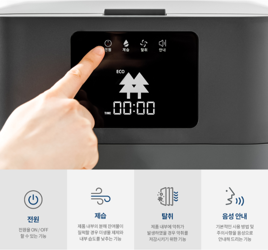 제습, 탈취, 음성 안내 기능이 있어서 스마트하게 활용 가능해요!