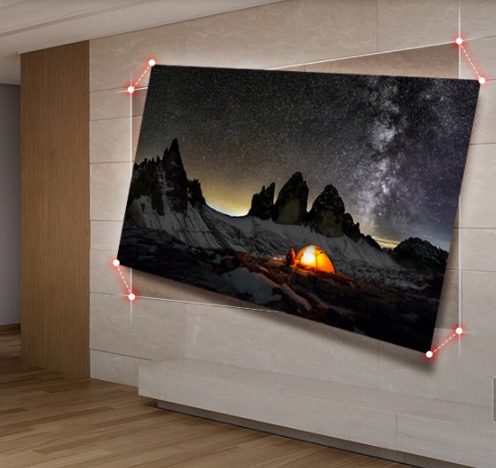 각 모서리 4개의 포인트가 있어서 정확한 비율로 수평을 맞춰 영상을 감상할 수 있습니다.