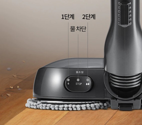 그리고 3단계 물 분사 조절이 가능한데요. 바닥 소재나 오염도에 따라 단계별로 조절해 상황에 맞게 청소가 가능하죠.