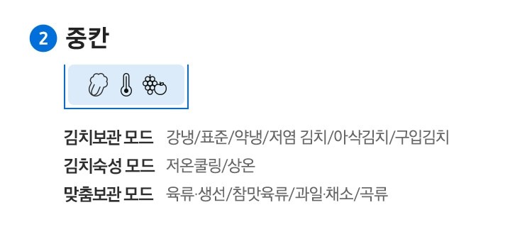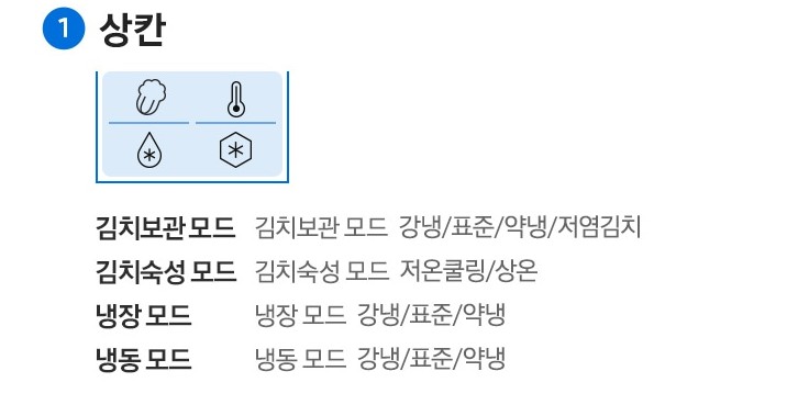 | 상온 모드 | 갓 담가도 알맞게 새콤달콤하게 완성 |
