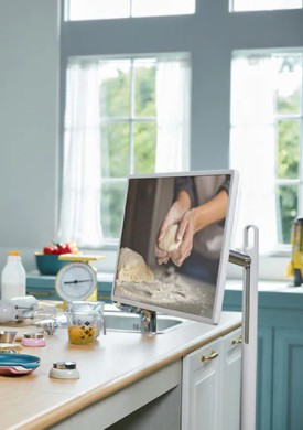 SNS 라이브 방송도 가능하고 홈트를 해도 좋은데요 특히 요리를 할 때 유튜브의 레시피 영상을 보고 하게 되는 경우가 많잖아요. 이동성이 편하고 스마트폰보다 화면을 크게 볼 수 있어서 요리할 때 유용하게 활용할 수 있습니다.