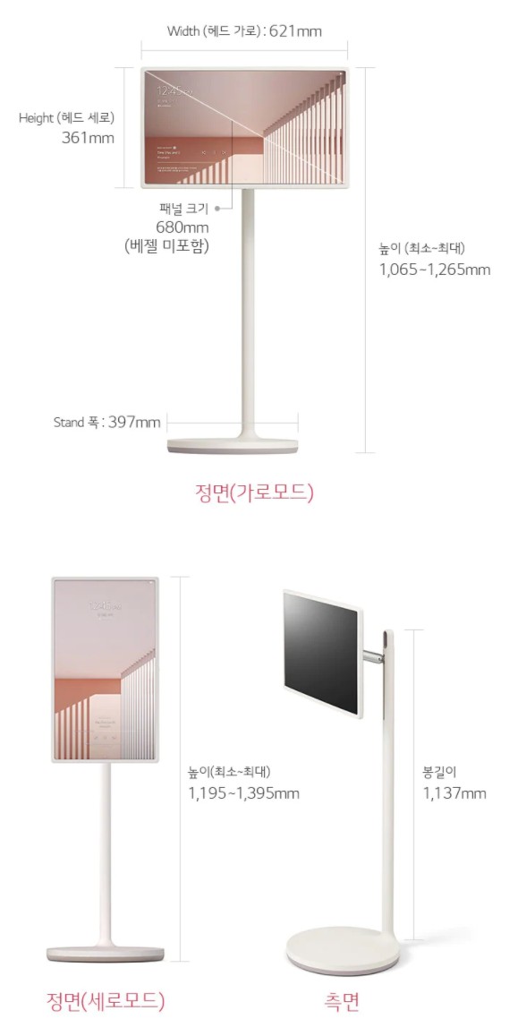 스마트폰의 가로, 세로 모드처럼 시계, 반시계 방향으로 돌려서 볼 수 있는 27인치형의 프라이빗 스크린입니다. FullHD의 1920x1080mm 해상로 IPS 패널 디스플레이가 탑재 되어 있는데요. 스마트폰처럼 터치스크린으로 손가락으로 간편하게 설정과 제어가 가능합니다. 위, 아래로 20cm의 높이 조절과 시청하는 자세와 위치에 맞게 각도 조정까지 가능한 것이 특징입니다. (인치에 익숙치 않으신 분들은 대각선 기준 68cm로 길이로 봐주시면 될 것 가습니다.)
