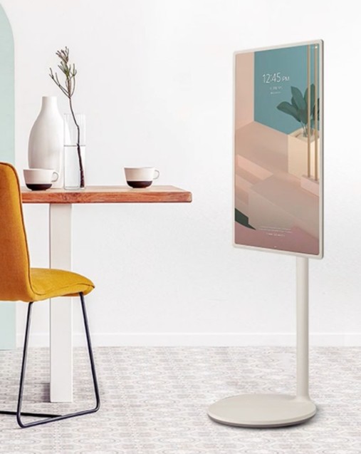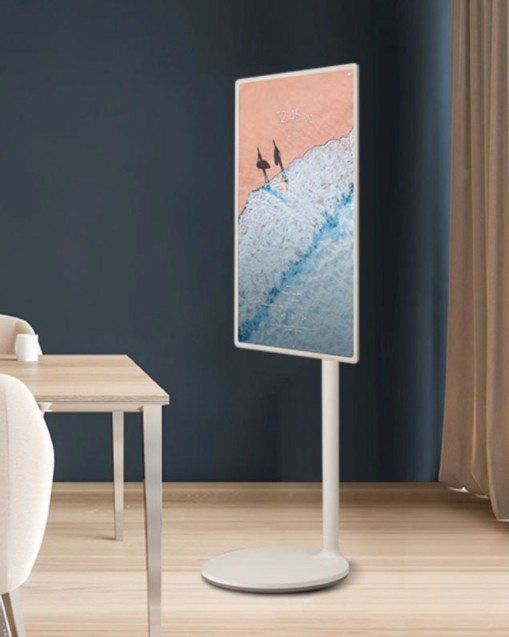 27인치의 화면의 터치스크린이 가능하고 무빙 휠로 이동시켜 어디서든 콘텐츠를 볼 수 있는 것이 특징인데요.