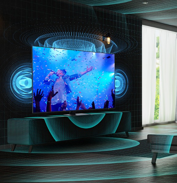 공간 맞춤 사운드+ 기술은 TV와 벽 사이의 거리, 공간의 소리 울림 정도를 분석해서 최적화된 사운드를 만들어 주는데요. 주변 소음을 스스로 감지해 불필요한 소리가 들리는 경우 화면 속 목소리를 높여주는 액티브 보이스 기능도 탑재되어 있는데요. 청소를 하거나 시끄러운 환경에서도 드라마의 대사도 선명하게 들리게 해준답니다.