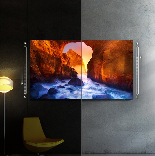 낮이나 밤 등 주변의 밝기나 콘텐츠의 장르에 따라서 AI 컨트롤러로 각 장면마다 화면 밝기도 자동으로 조절합니다.