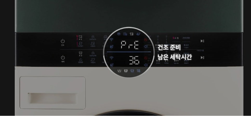 세탁 코스에 맞춰서 건조 코스를 설정할 수 있답니다. 조작 부도 LED 디스플레이 화면으로 세탁과 건조 동시에 확인하고 한 번에 편리하게 설정할 수 있어요.