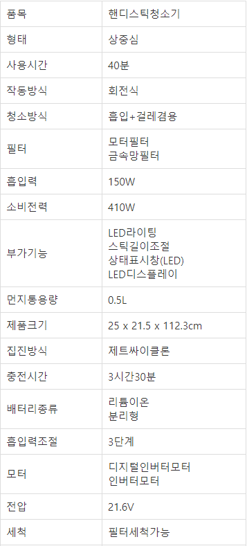 | 삼성 특허 기술인 27개 에어홀의 제트 싸이클론의 15w 강력한 흡입력 |