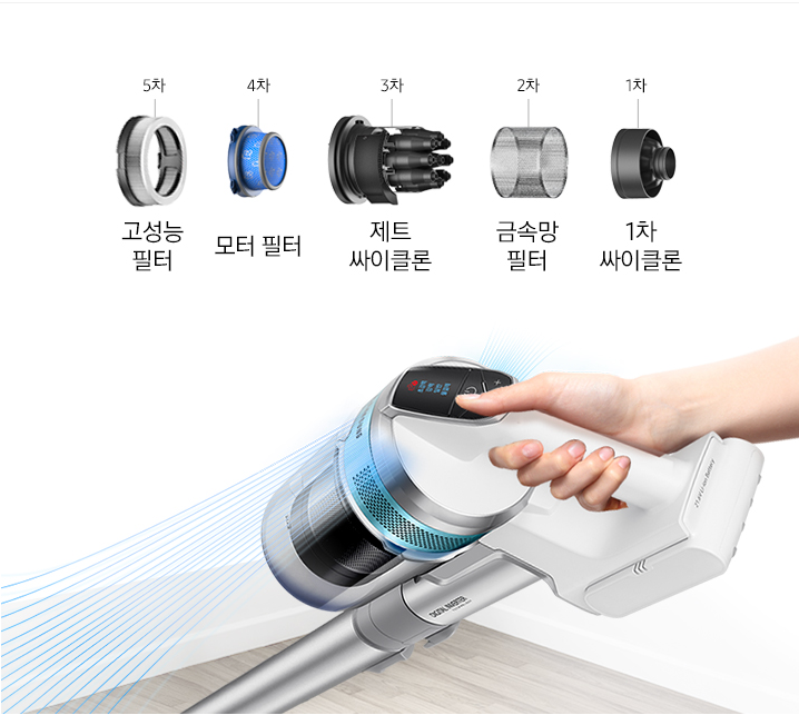 삼성 제트의 고성능 99.999 % 미세먼지 배출 차단 시스템으로 뒤로 나오는 미세먼지 걱정 없이 안심하고 사용할 수 있습니다.