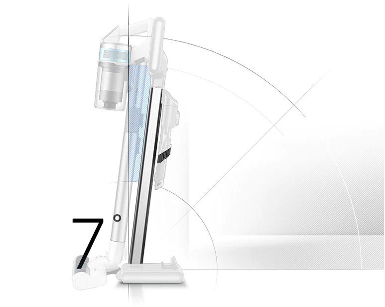 최적화된 삼성 제트 무선청소기 VS15R8547Q1CW의 무게 중심 설계로 무게는 2.64 kg으로 가볍고,좌우 방향 전환도 가뿐해 손목 부담 없이 사용할 수 있습니다. 4단계 길이 조절이 가능한 다단 연장관으로 사용자 키에 맞추어 사용 가능해 보다 편한 자세로 청소 가능합니다.