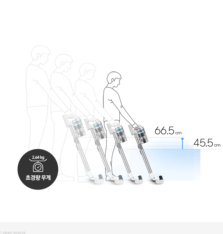 | 인체공학 디자인으로 2.64kg 초경량의 편안한 청소 |